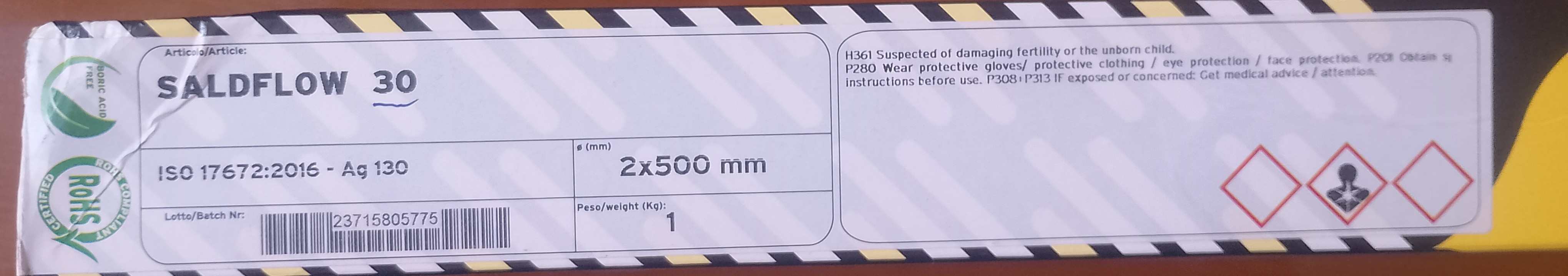 سیم جوش نقره روکشدار بدون کادمیوم 30% قطر 500 * 2 م م ایتالیایی هر عدد سیم جوش